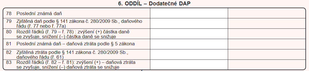 V dodatečném přiznání uvádíme celé hodnoty (nikoliv jen rozdíly oproti původním hodnotám). Rozdíly pak vyplníme v rozdílových řádcích oddílu „dodatečné DAP“.