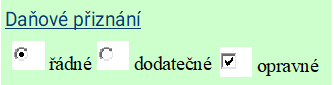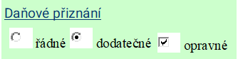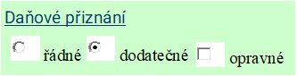 V záhlaví přiznání zaškrtneme „řádné“ a zároveň „opravné“ přiznání.