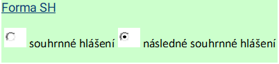 V záhlaví formuláře uvedeme (v sekci „Forma SH“), že se jedná o následné souhrnné hlášení.
