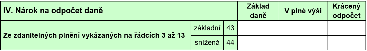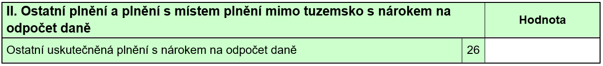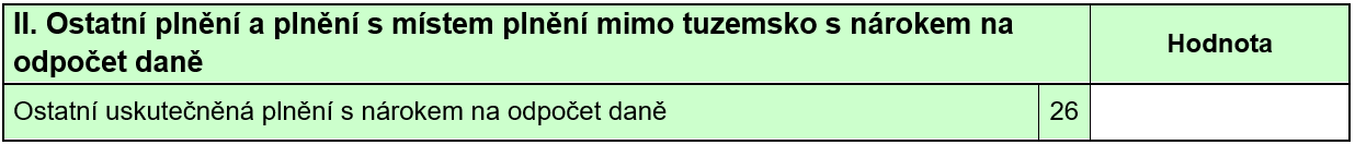 U těchto plnění (na rozdíl od výše jmenovaných) nárok na odpočet máme. Obecně lze říci, že všechna tato (níže uvedená) plnění mají prvek přesahující hranice České republiky. Jedná se o tato plnění s uvedením, na kterém řádku přiznání k DPH je uvádíme: