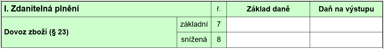 - dovoz zboží s místem plnění v tuzemsku.