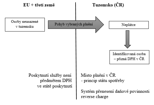 Je třeba si uvědomit, že zde sledujeme přijatá plnění poskytnutá jakoukoliv osobou neusazenou v tuzemsku. To znamená nejen osobou povinnou k dani z EU, ale i osobou povinnou k dani z prostoru třetích zemí (mimo EU).