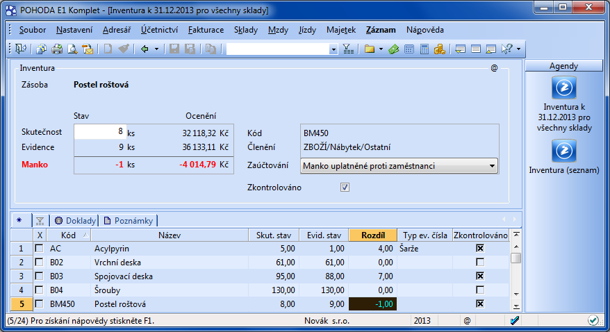 Co na to POHODA? V sestavené inventuře se u jednotlivých zásob vyplňuje skutečný stav zjištěný při fyzické inventuře do pole Skutečnost.