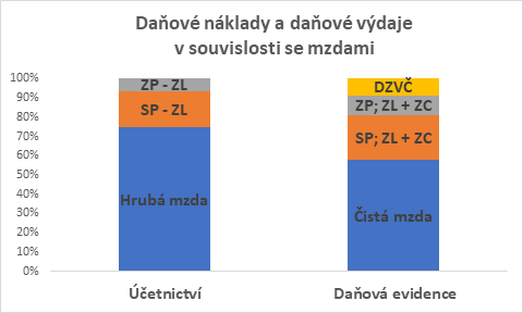 Jediný rozdíl je v časovém okamžiku uplatnění daňových nákladů v účetnictví a daňových výdajů v daňové evidenci, který se konkrétně projeví v časovém posunu v uplatnění v základu daně z příjmů z podnikání mezi jednotlivými kalendářními roky u mezd zúčtovaných za prosinec.