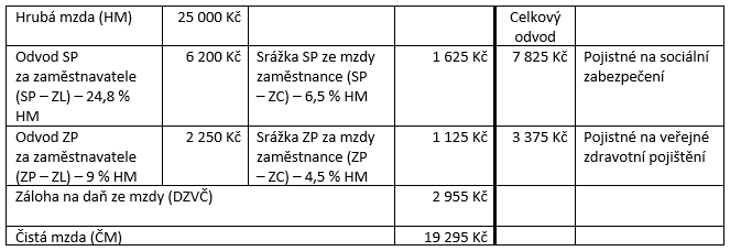 Paní Lukešové byla u stejného zaměstnavatele a za stejné období zúčtována hrubá mzda ve výši 25 000 Kč. K této mzdě máme následující údaje.