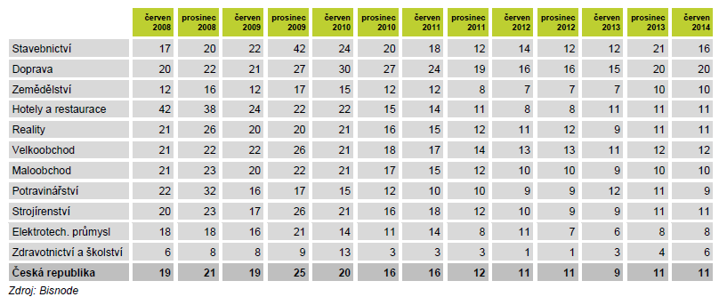 Průměrné zpoždění plateb v rámci tuzemské ekonomiky je 11 dnů po splatnosti. Nejhorší platební morálka panuje v dopravě a stavebnictví, naopak nejlépe si vedou společnosti z oblasti zdravotnictví a školství.