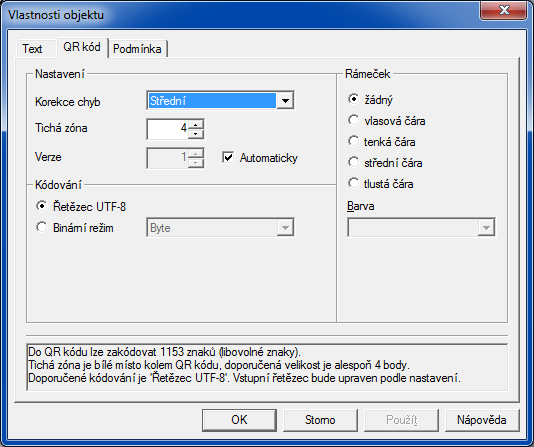 Co na to POHODA? Dialogové okno Vlastnosti objektu slouží k nadefinování vlastního QR kódu.