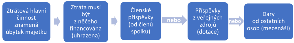 - hlavní činnosti, tedy z činnosti, která naplňuje účel, pro nějž byl spolek založen, pokud je ztrátová,