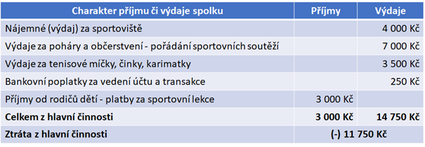 Příklad 1 – Malý spolek pouze s hlavní ztrátovou činností
