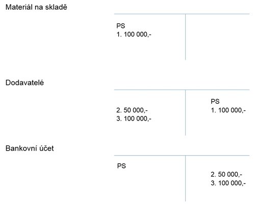 - Faktura za materiál, který jsme současně přijali na sklad: 100 000,-