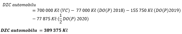 Toto je daňová zůstatková cena automobilu podle § 29 odst. 2 ZDP stanovená ke dni jeho vyřazení z daňové evidence (obchodního majetku) v roce 2020 a tato daňová zůstatková cena je testována podle důvodů vyřazení majetku ve stejné logice, jak bylo uvedeno v případě vyřazování počítače, proto zde již nebudeme blíže rozebírat.