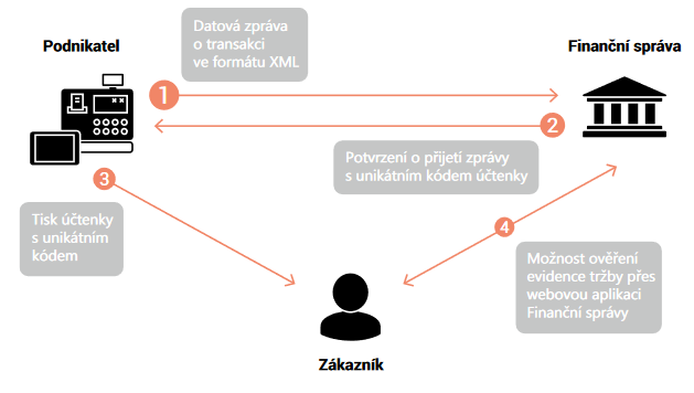 Elektronická evidence tržeb (dále jen „EET“) spočívá v online evidování plateb v okamžiku jejich uskutečnění, přičemž se vztahuje pouze na platby vymezené zákonem o evidenci tržeb. V ideálním případě je samotný postup EET následující – během platby podnikatel odešle Finanční správě data o transakci a vzápětí od ní obdrží potvrzení o přijetí s unikátním kódem účtenky (fiskální identifikační kód, tzv. FIK).