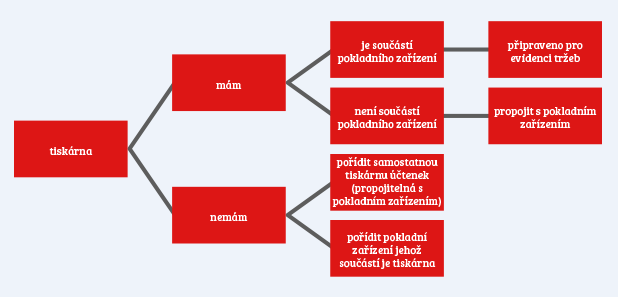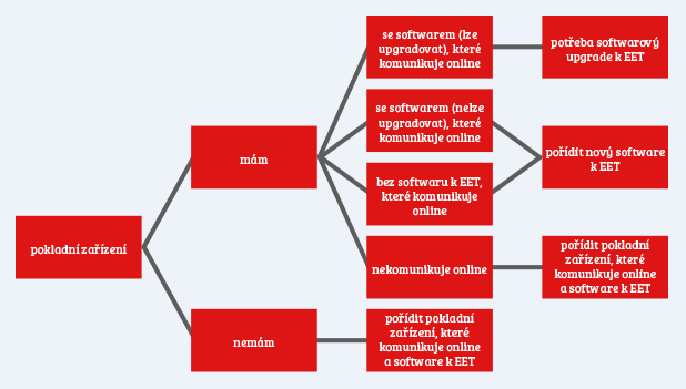 Většina podnikatelů již dnes ví, že první evidovanou tržbou budou tržby ubytovacích a stravovacích služeb od 1. 12. 2016. Do té doby je třeba se připravit na tuto skutečnost zejména technicky. Co se týká nutného vybavení, můžeme využít následující schéma.