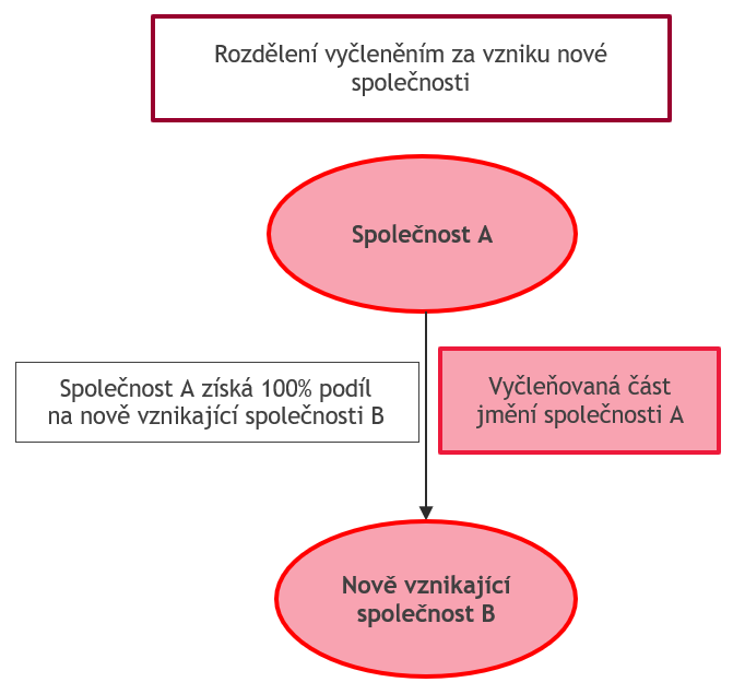 Pro lepší pochopení je připojeno grafické znázornění rozdělení vyčleněním za vzniku nové společnosti:
