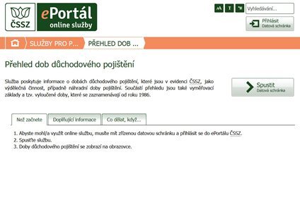 Chcete zjistit, zda máte do důchodu započteny všechny doby pojištění a výdělky? Od března si svoje „důchodové konto“ můžete zkontrolovat na internetu. Stačí mít zřízenou datovou schránku a přihlásit se do ePortálu ČSSZ.